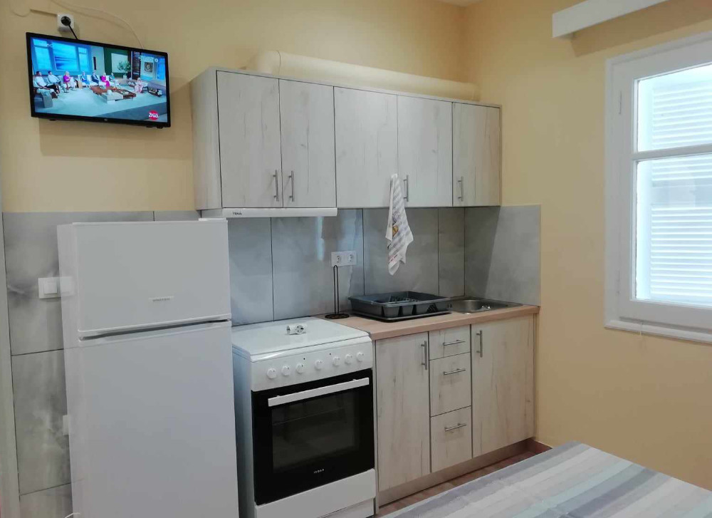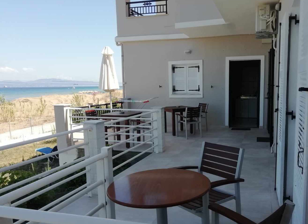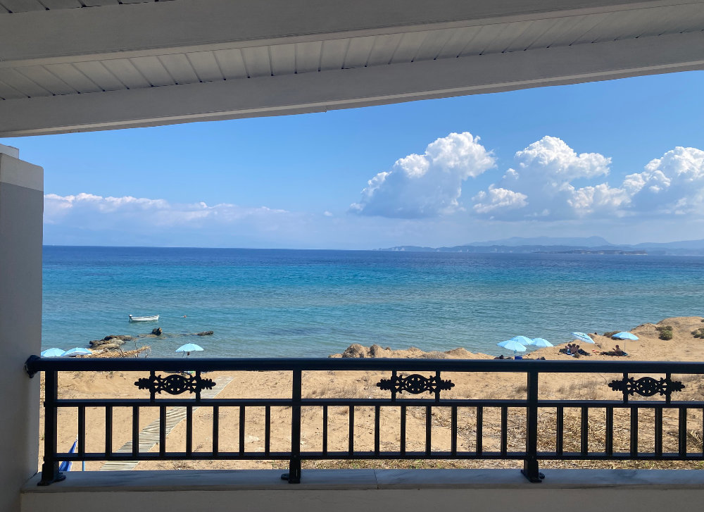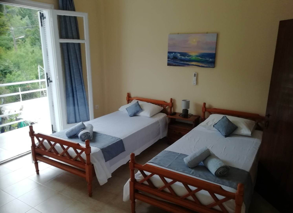 The hotel has 2 two-bedroom room suites and 6 twin bedded studios – all with sea view balcony, shower room and kitchenette with fridge table and mini stove, but no air conditioning.